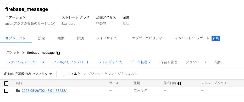 最後にエクスポートをクリックすると、Cloud Storageにデータが転送されます。