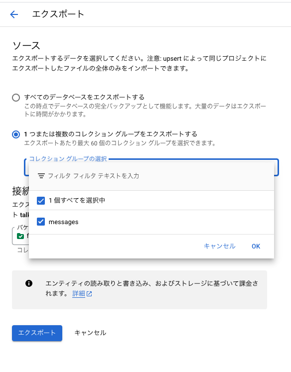 エクスポートはCloud Strageに対してのみ行われます。必要に応じてパケットを作成します。