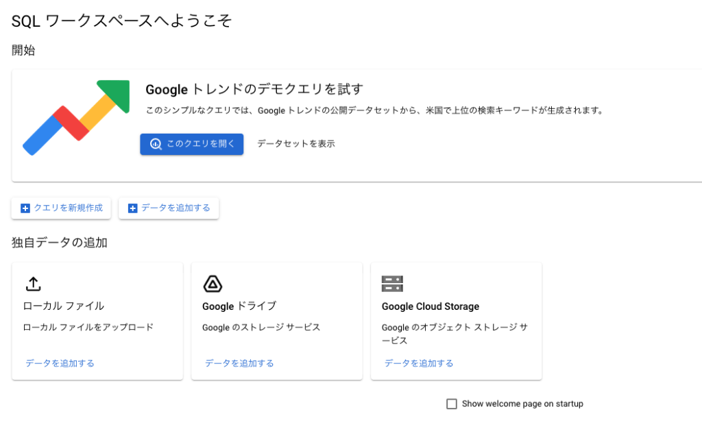 独自データの追加から「Google Cloud Storage」のデータを追加するをクリックします。