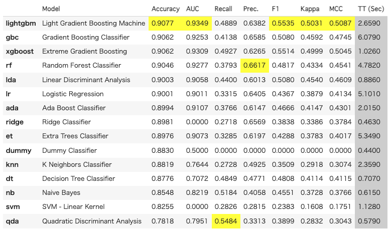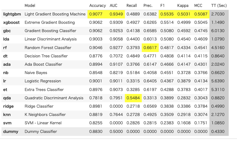 また、pycaretの公式ドキュメントには以下のような記載がありました。