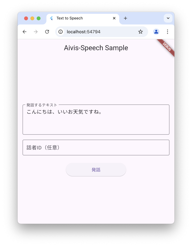 以下のコードは、入力したテキストを発話せさるサンプルプログラムです。